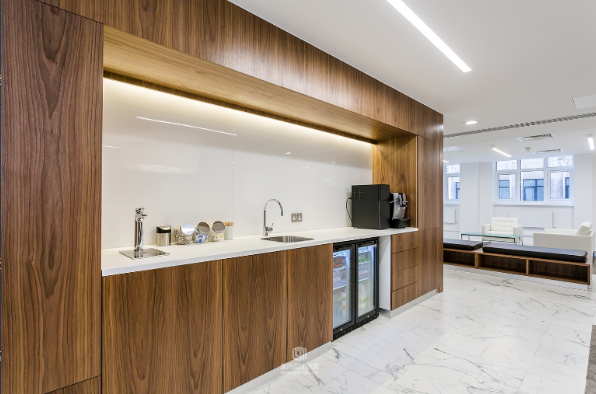 办公室环境的设计上流社会感官,客户想要办公室要有上流社会休息室般的外表和感官,以便招待顾客和来访的经纪人们。在经过了广泛的研究、创造性的设计和与利益相关者谈话之后,我们商定的设计能够通过将质量、高雅性和风格聚集在一起来满足他们的需求。我们为销售部门和行政管理团队创造了一个开敞布置的空间。我们为经纪人们在一套会议室中添加了一个休息室区域,还创造了一个饮料站和给人印象深刻的接待区域以便让客人们感觉宾至如归。”