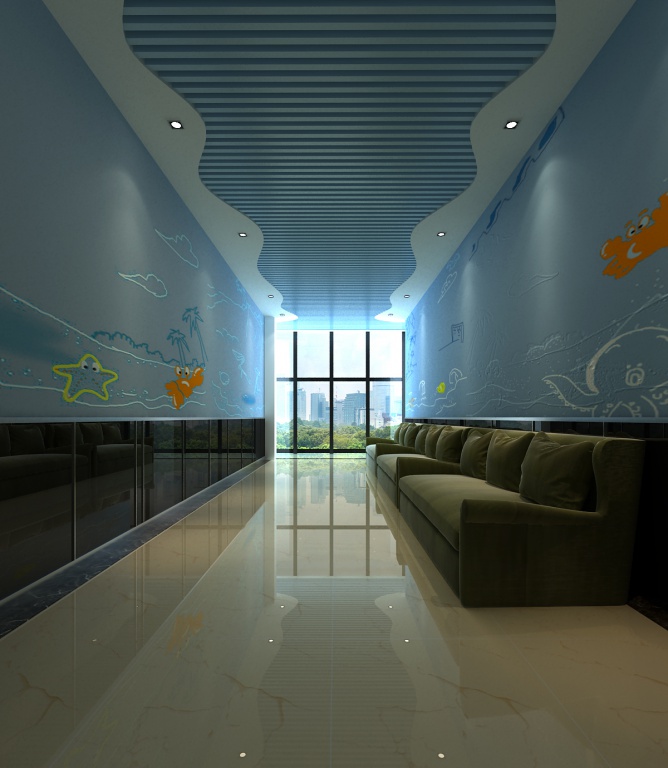 现代时尚儿童艺术培训中心设计,以现代时尚加部分儿童元素为设计方向,华丽的玻璃幕墙,重点接待大厅为新型装饰材料软膜天花和硅藻泥。造型色调各异的排练厅迎合了各个年龄阶段的学生心理,优秀的设计就是更好的商业价值。