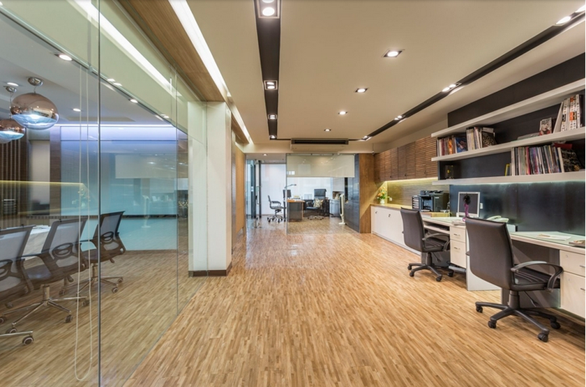 珠宝设计企业办公室装修。办公室既能用来与客户洽谈商务,另一部分也能作为生产商和供应商接洽的地方。通过办公室设计中有趣的形状和材料能反映出公司产品的个性,高端珠宝公司设计首先在形象上就要像华丽靠齐,3-4米挑高楼层设计师咋前台背景墙面做了一个到