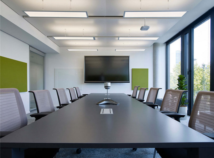 软件公司办公楼装修效果图,所有的会议厅都运用了最先进的媒体技术。由于技术要求, 这些房间被设计成最理想的正方形。其中三个会议室还使用了全息影像技术。 而大部分的会议室都应用了动态日光调控系统。
